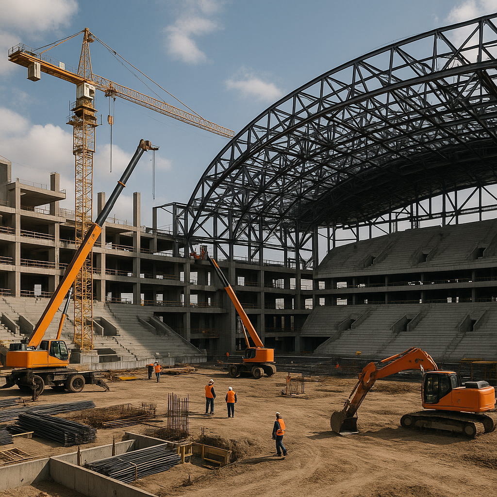Sports Complex Construction: Design and build of football fields, basketball/volleyball courts, swimming pools, fitness centers, and multi-use sports halls.
